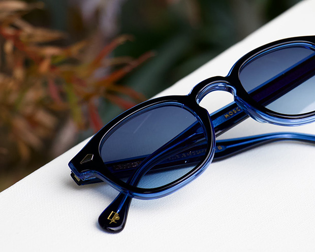 鮮やかなブルーとブラックアセテート」を掛け合わせ、