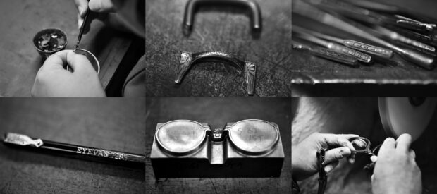 初代デザインチームが収集した古い眼鏡や望遠鏡、